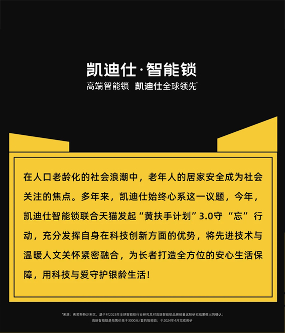 凱迪仕聯(lián)合天貓發(fā)起“黃扶手計劃”守“忘”行動,獲“愛心品牌”榮譽,用科技與愛守護銀齡生活!
